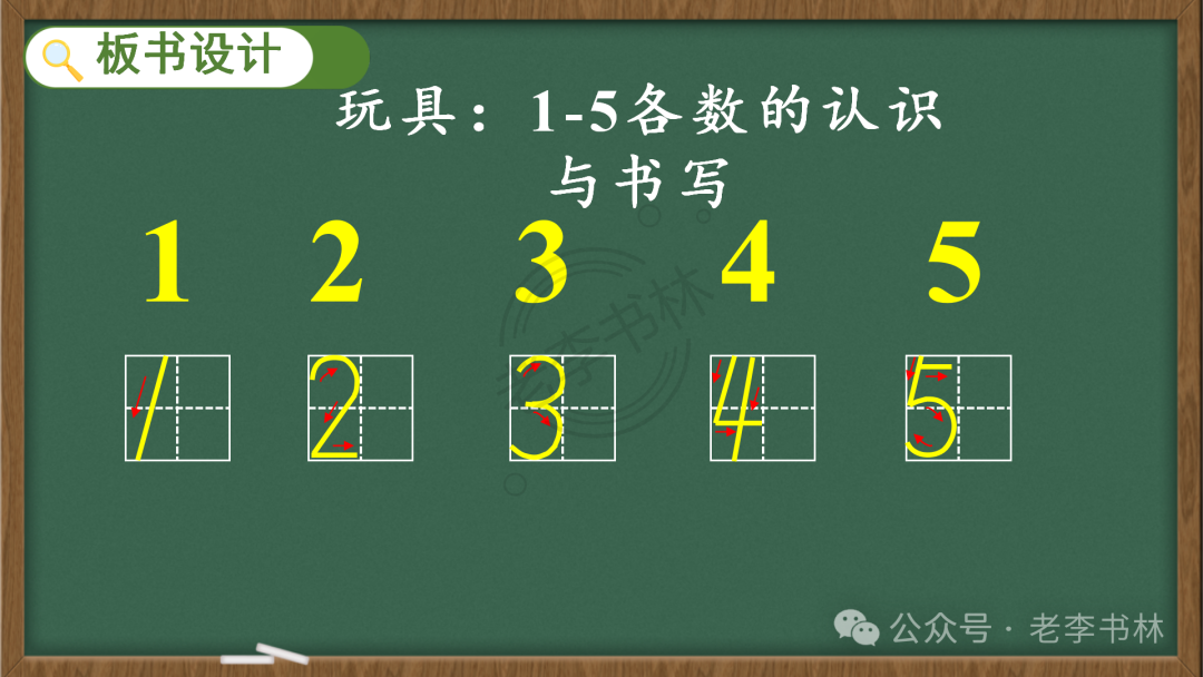 师:好,下面大家把书打开,在我们书上就有1-5的写法,请同学们把书翻