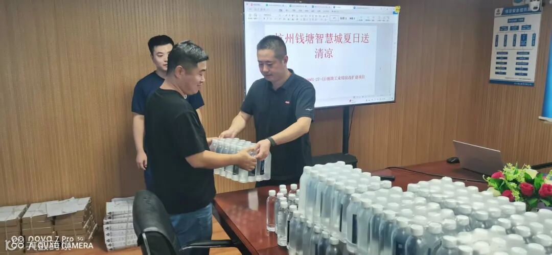 与此同时,钱塘智慧城积极开展“夏日送清凉”活动,深入辖区多个建筑工地,为一线工人送去防暑降温物资,并同步开展安全宣传,要求各工地科学安排高温时段作业时间,加强对工人的防暑降温与安全知识教育,严格落实高温应急预案及其他安全管理制度。