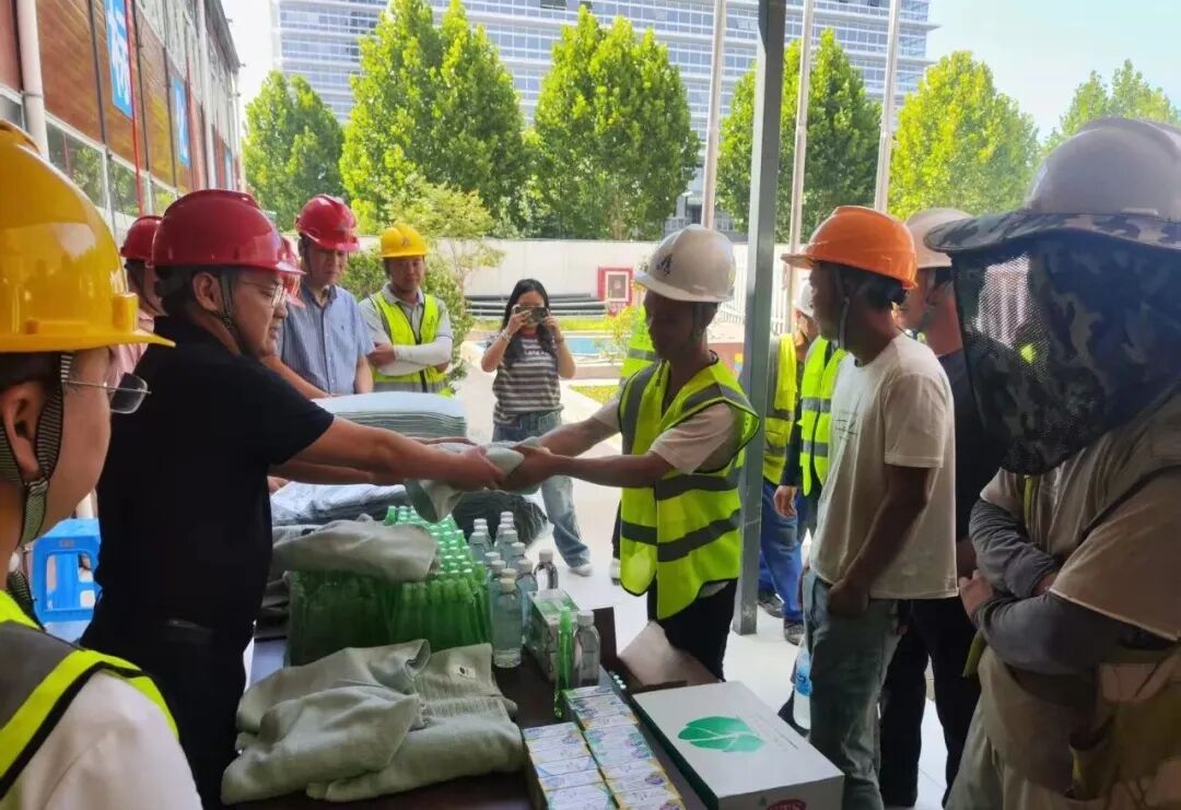 面对高温,该项目组实行错峰作业:上午10点前结束室外工作,下午4点后复工,室内作业照常进行。项目部不仅为工人发放防暑药品,还组织开展施工安全交底和应急培训。此外,生活区空调全天开放,确保工人休息质量。