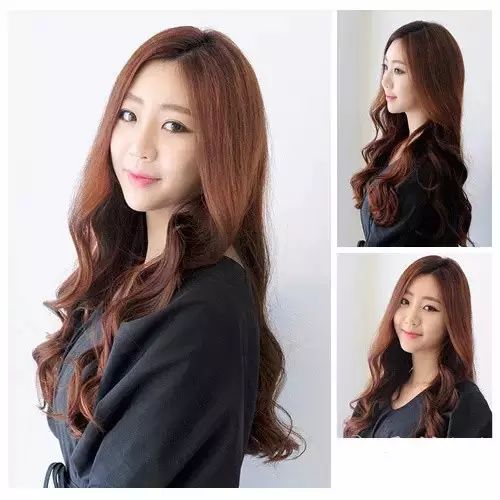 侧分的长卷发优雅大气,两边的头发贴近脸颊轻松瘦脸,棕色染发提亮肤色。