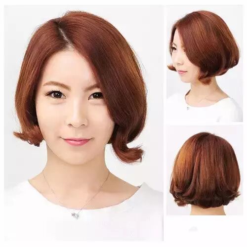 棕色波波头侧分设计有不对称的美感,刘海外翘更清甜。