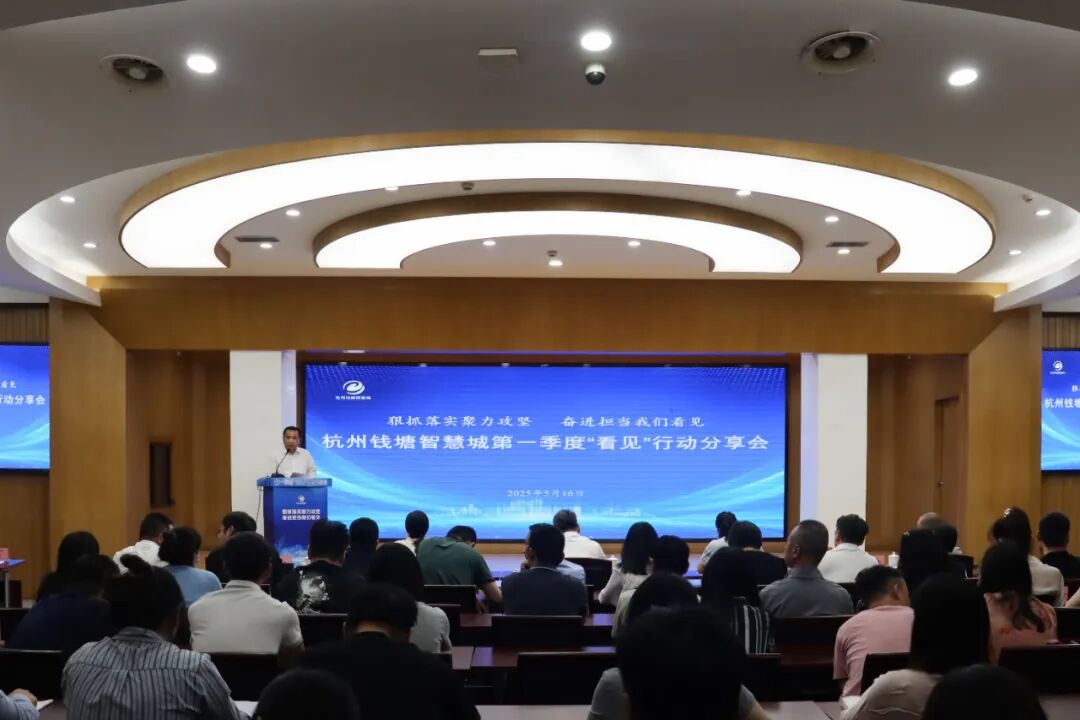 为鼓舞钱塘智慧城干部奋勇争先、决战决胜的信心和士气,让每一个身影、每一份默默坚守和贡献都被“看见”、肯定和激励,5月16日,杭州钱塘智慧城举行“狠抓落实聚力攻坚 奋进担当我们看见”第一季度“看见”行动分享会。现场,宣读了2024年度智慧城优秀员工、2025年第一季度“看见最美榜”名单,各科室、中心及公司从看见优秀、看见成长等角度分享各自在省级高新区创建、指标争先、产业引育、为企服务等工作中涌现出来的好干部和好团队,展现干部真抓实干、拼抢快干的精神风貌。
