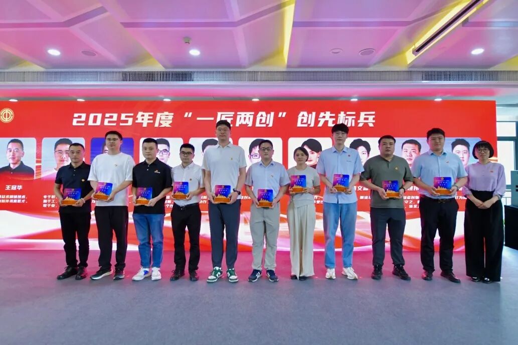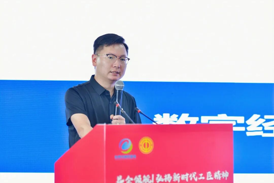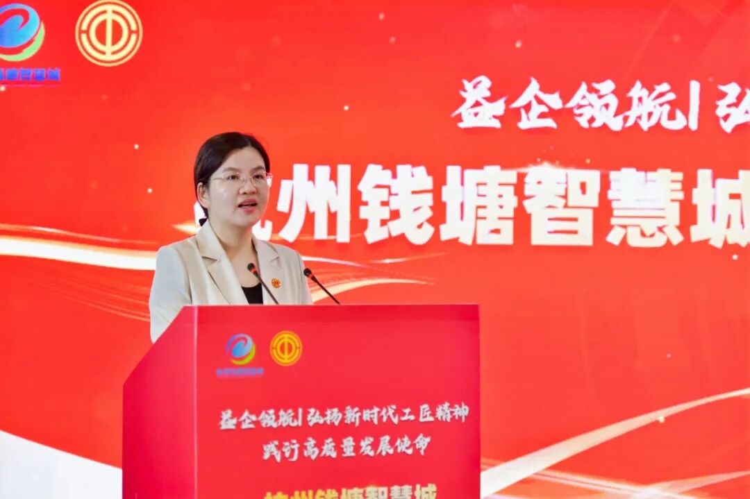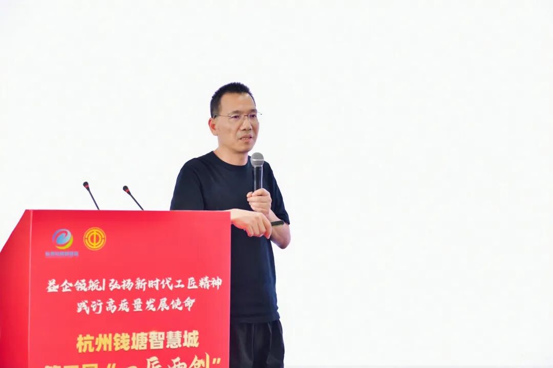 活动现场,钱塘智慧城党工委委员、管委会副主任、智慧城总工会主席余宏刚揭晓杭州钱塘智慧城总工会2025年度“一匠两创”榜单。