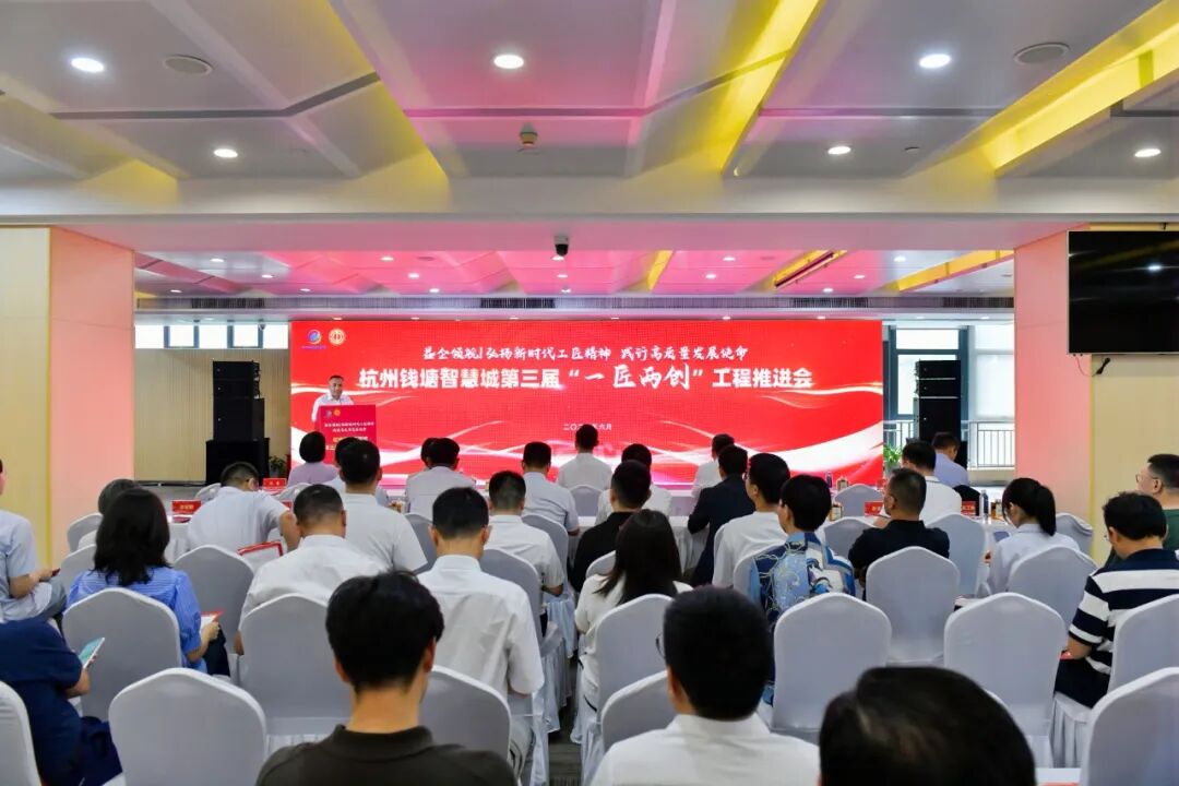 6月13日下午,钱塘智慧城第三届“一匠两创”工程推进会在创智工匠服务中心举行。杭州市总工会经济工作部部长柴煜卿,上城区委常委、副区长,钱塘智慧城党工委书记孔德君,区总工会、钱塘智慧城等相关负责人,以及智慧城工匠代表、首期“匠企成长营”学员和重点企业工会负责人等100余人出席活动。