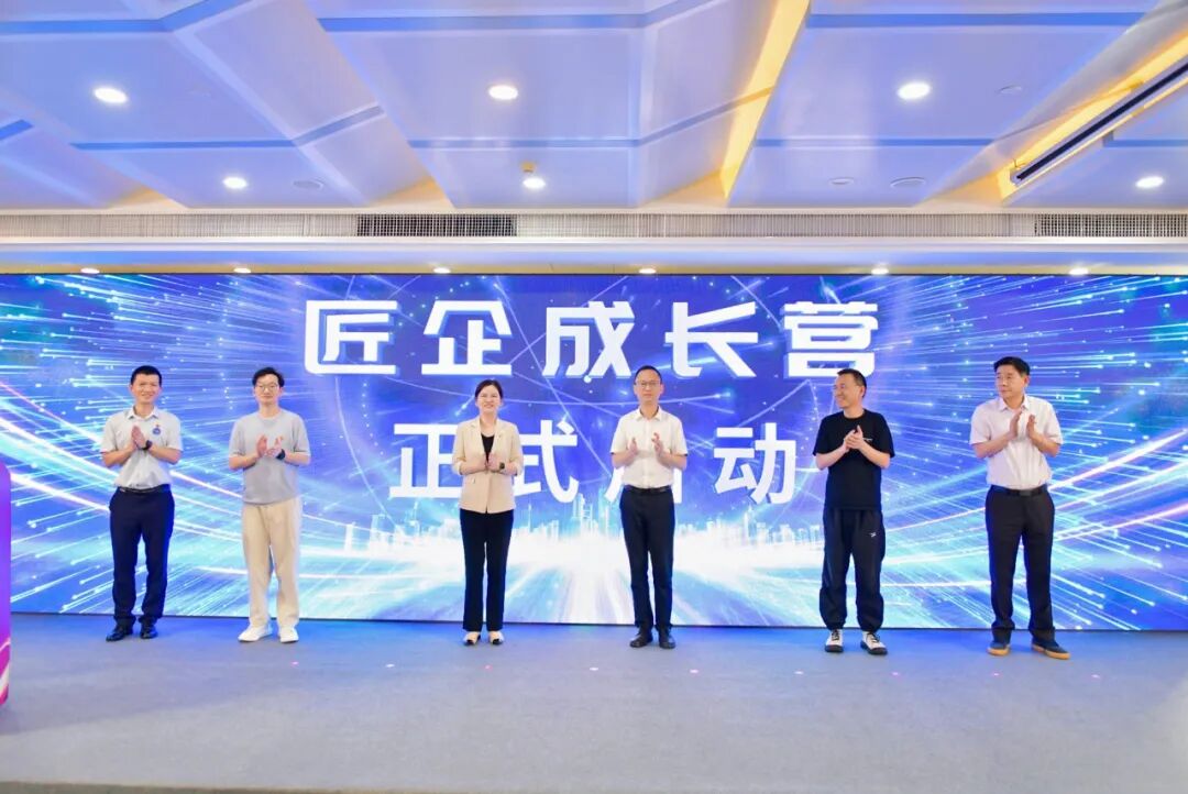 随后,在与会嘉宾的见证下,柴煜卿、孔德君和学员代表上台,共同按下启动键,标志着钱塘智慧城“匠企成长营”正式成立。