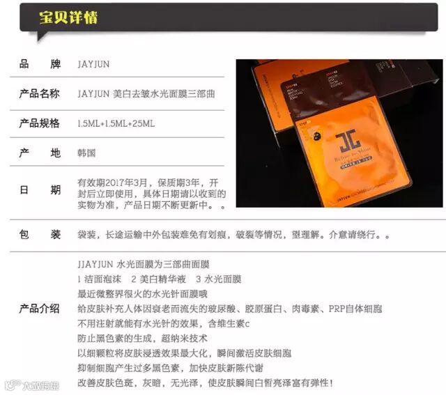 韩国JAYJUN整形医院皮肤科研制首款水光面膜。