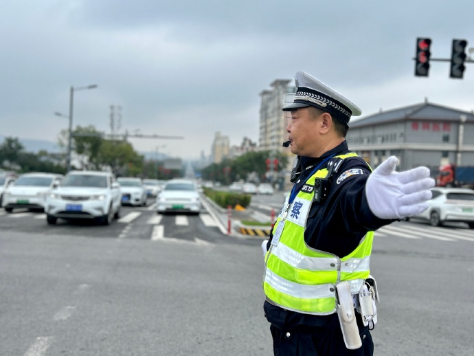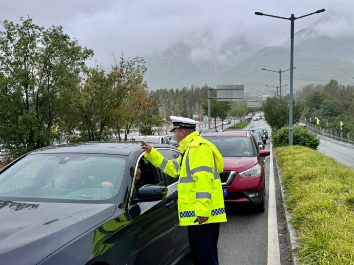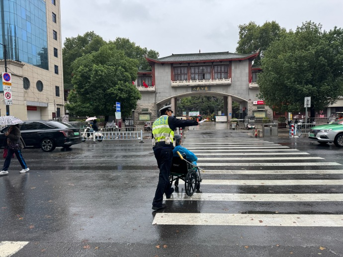 冒雨疏导管控,守护着雨天的秩序与安全……