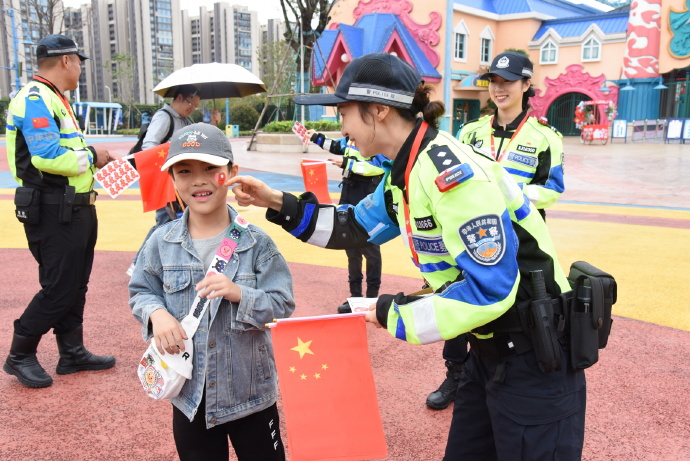 随后开警车为载有患儿的车辆开辟 “生命通道”
