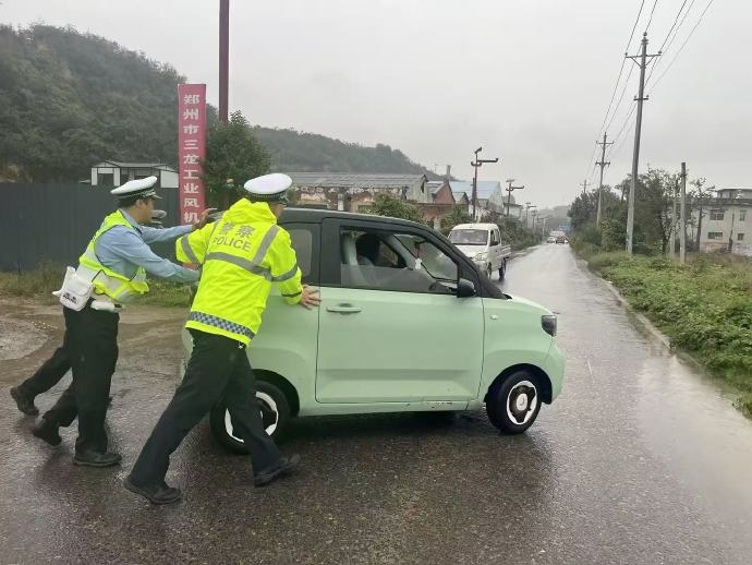 2025年10月1日,荥阳交警在辖区巡逻时,接到群众求助。一名女子称,其驾驶的新能源汽车因电量过低无法正常行驶,民警在确保道路通行安全的前提下,将车辆推至附近充电站充电,并协助该女子及随行两名儿童安全离开。