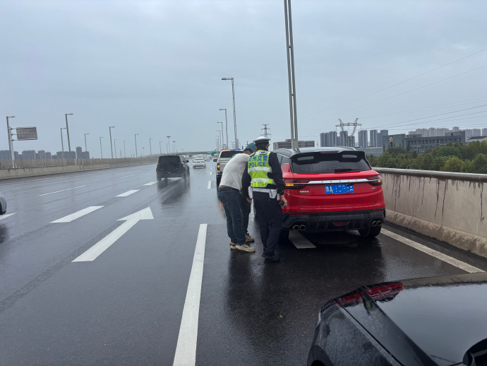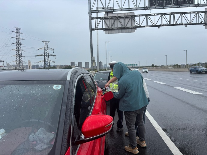 国庆假期,郑州东三环高架上演暖心一幕:一辆轿车因燃油耗尽停在路上,正值车流高峰,十分危险。交警十二支队巡逻民警发现后,立即设置安全防护,并化身“最强后勤”,火速联系救援送来汽油。最终,车辆安全驶离。