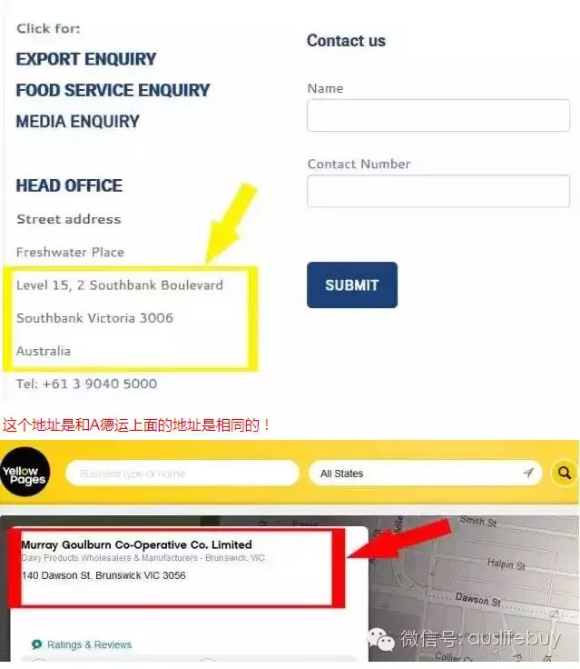 虽然B德运上的地址在官网上找不到,但是在澳洲的黄页(yellow page)上,我们还是找到了相关的信息,可以确定的是,这个地址的确是属于Murray Goulburn也就是德运所属的MG公司!