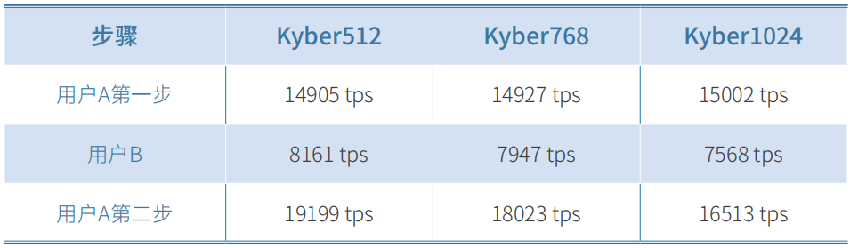 表 混合SM2+Kyber后量子密钥协商协议实现性能(tps:次每秒)