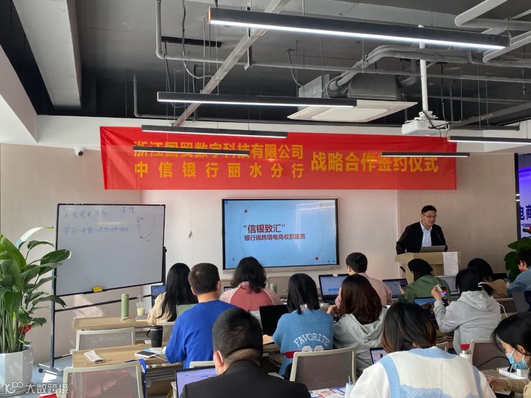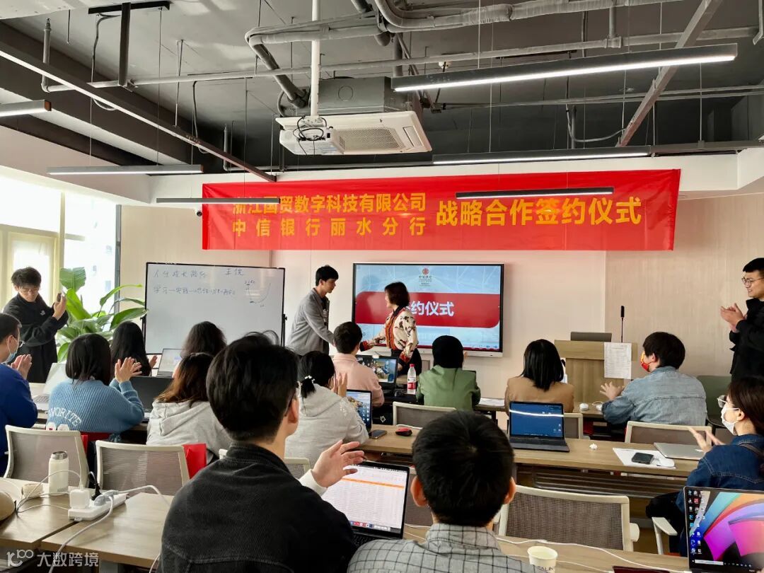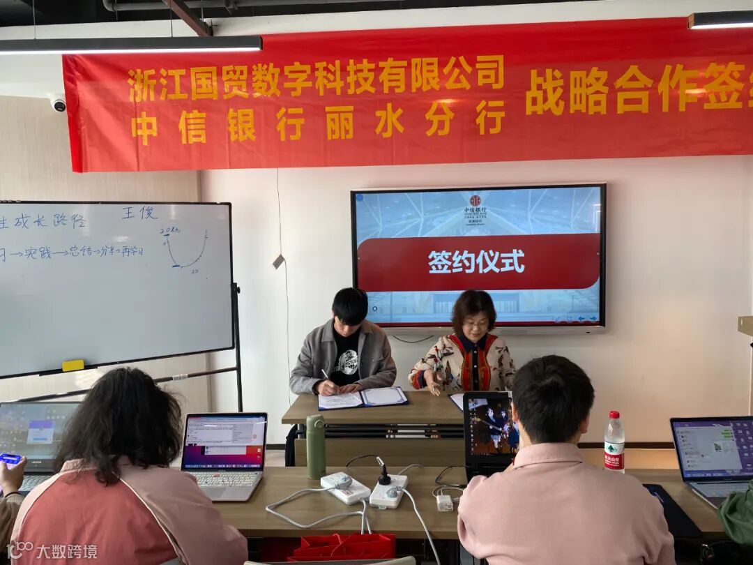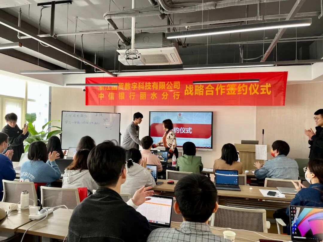 为了支持莲都区实体经济发展,优化跨境电商发展环境,更好更快地促进莲都区数字贸易发展和产业转型,浙江国贸数字科技有限公司和中信银行股份有限公司丽水分行本着“自愿平等、互利诚信、发展共赢”的原则,以共同发展和长期合作作为目标,建立战略合作关系。