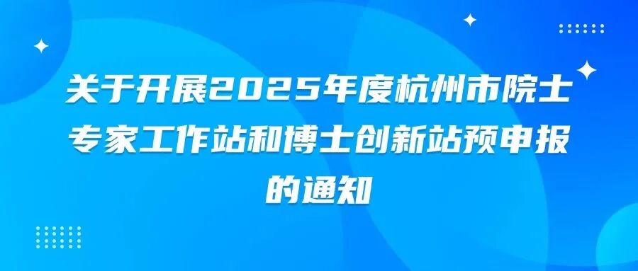 为深入实施创新驱动发展战略,引进高端智力资源,赋能科技创新,促进成果转化,提升企业竞争力,现面向全区征集2025年度杭州市级院士专家工作站、博士创新站(2022年新增)建设单位。有关事项通知如下: