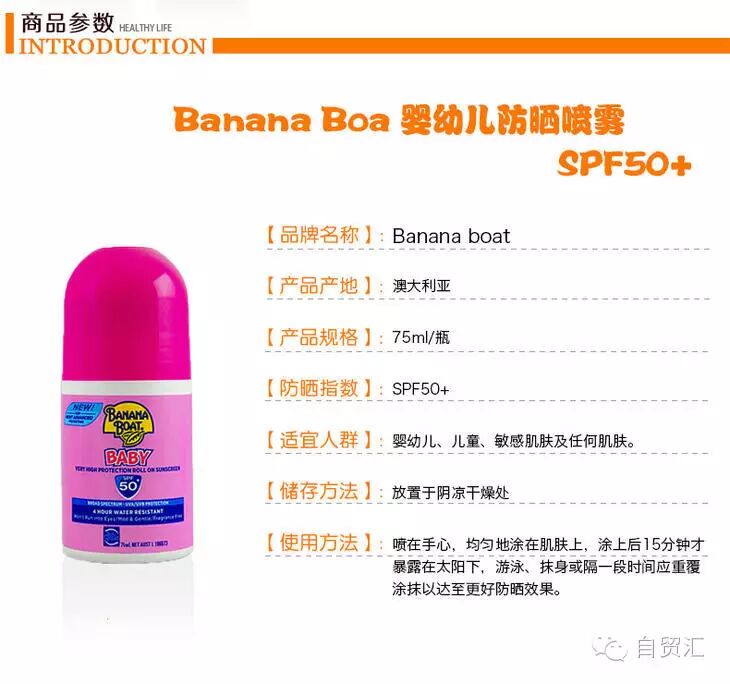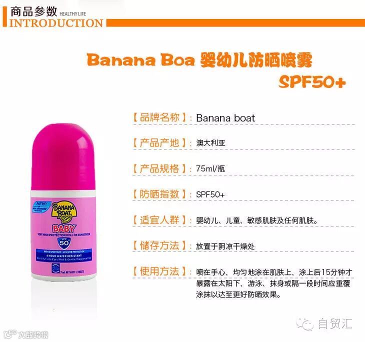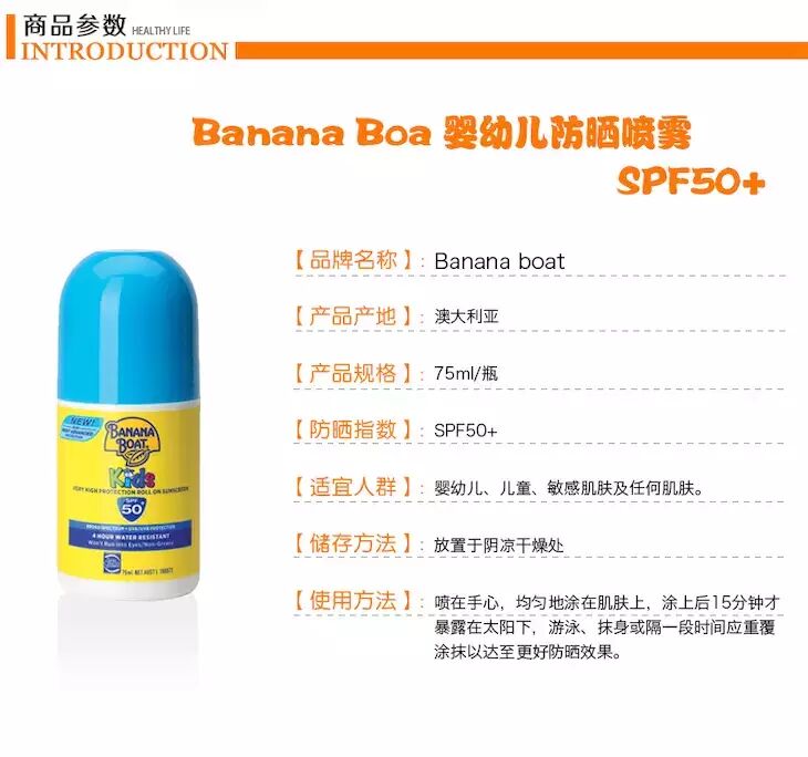 【产品名称】Banana Boat香蕉船婴儿滚珠防晒霜50+/75ml
