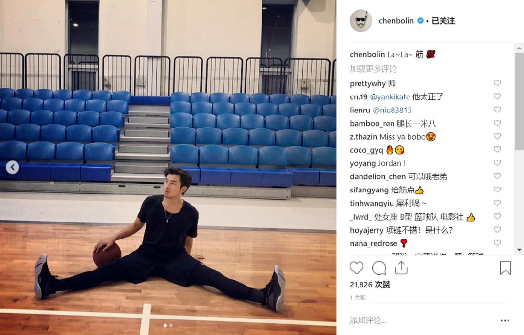 陈柏霖也疯狂,打篮球几乎都会穿它家的库里系列,穿梭球场。