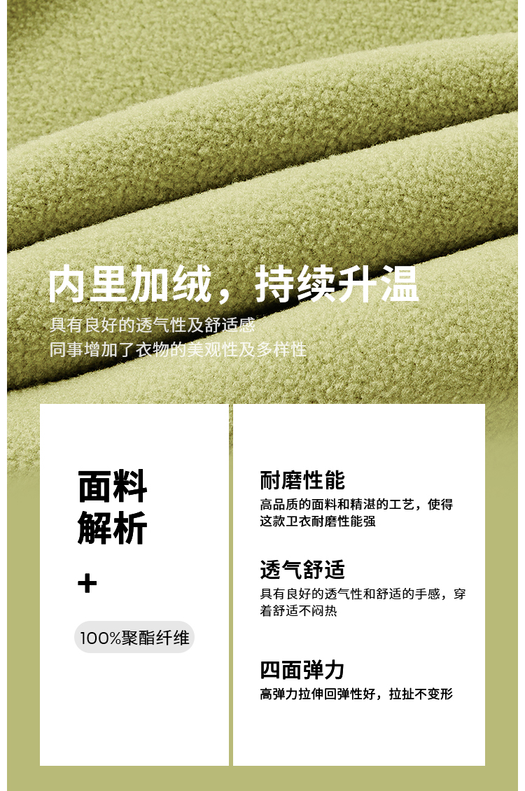 而摇粒绒连帽卫衣则内外都是摇粒绒,双重暖和,面料特别添加了导电纱线,不会有“噼里啪啦”的静电,穿脱更舒心~
