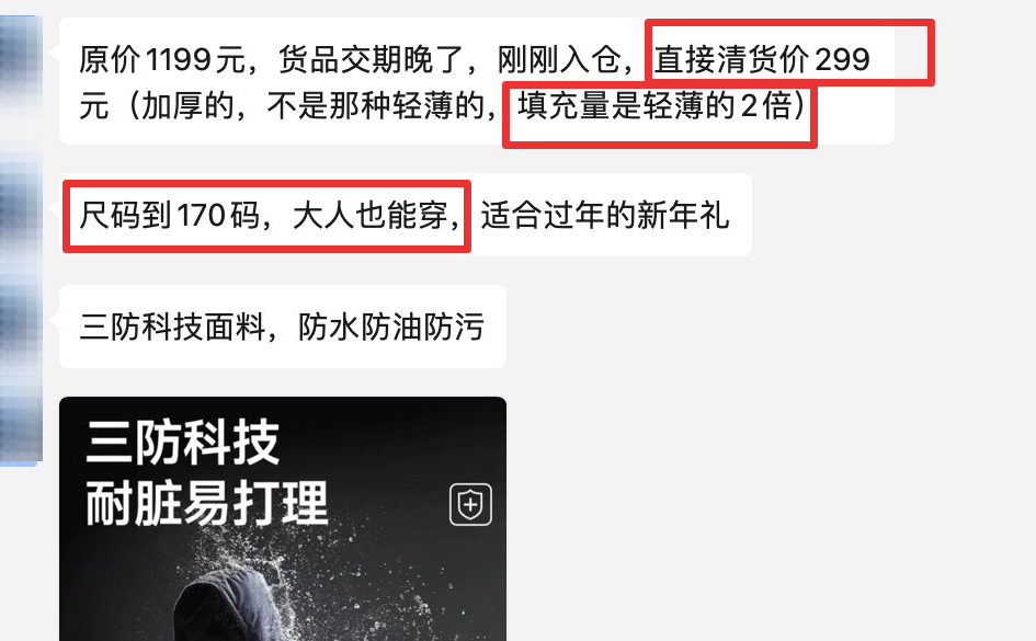 咋回事呢?就是品牌自己失误,专柜1199的三防羽绒服,由于上市过晚,各渠道销售节奏都受到挤压,现在只能被迫299元破价出。