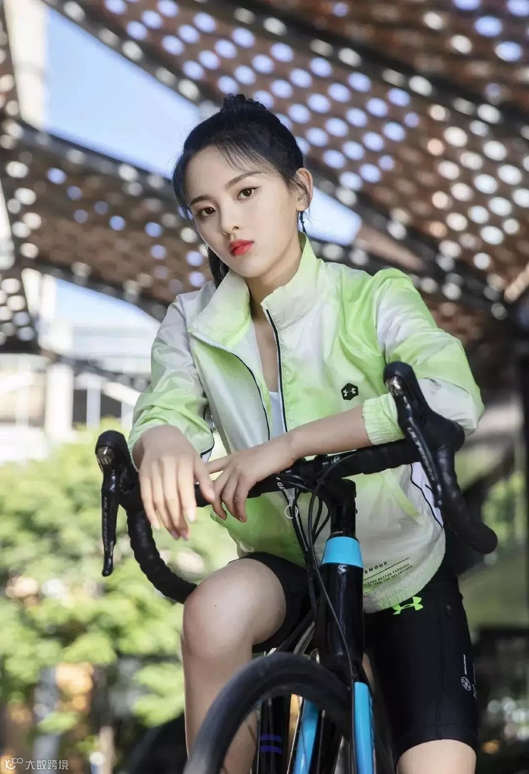 超越妹妹用荧光绿点缀的休闲上衣,搭配紧身骑行裤,上松下紧的穿搭公式运用得如鱼得水。