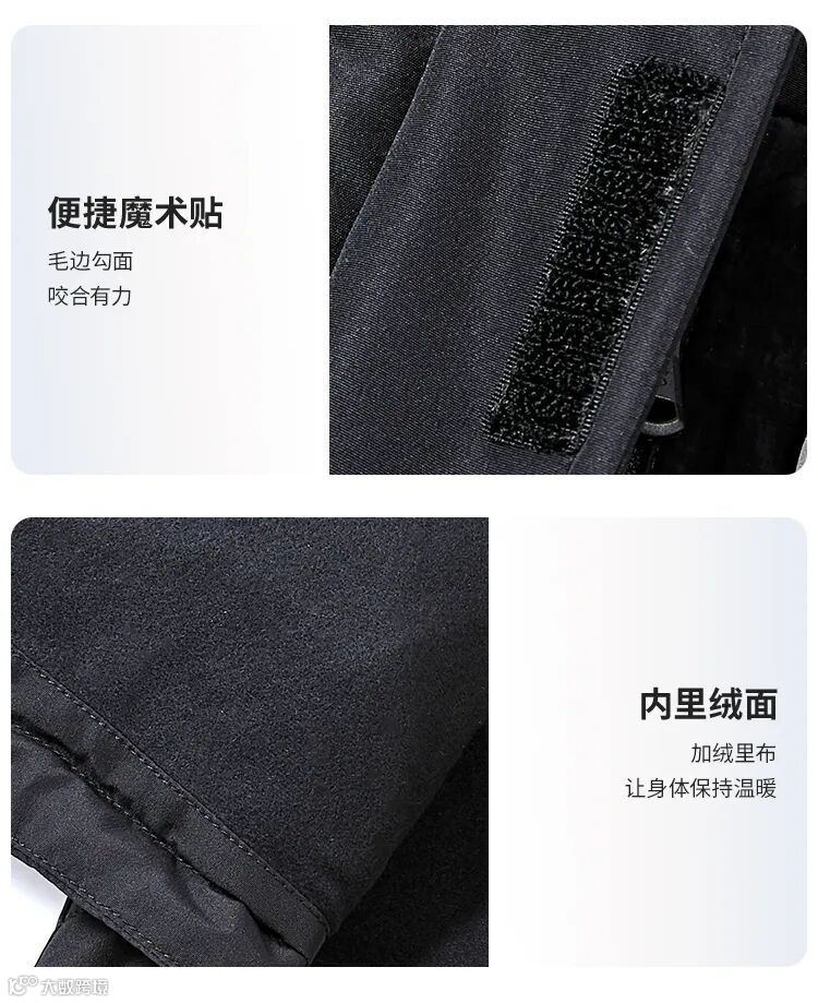 便捷魔术贴,挡风更加分。内里还是加绒面料,又暖一分。