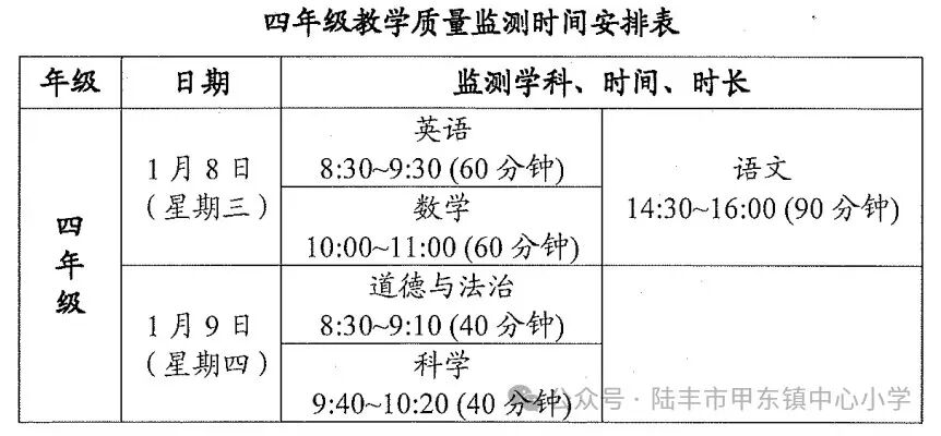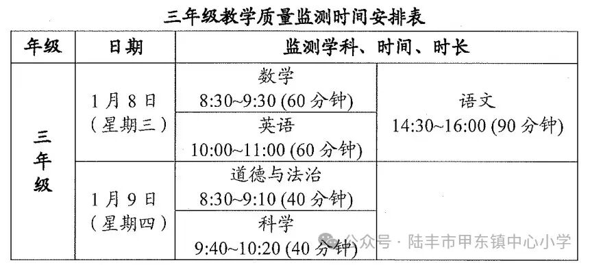 陆丰市义务教育阶段期末考试时间安排