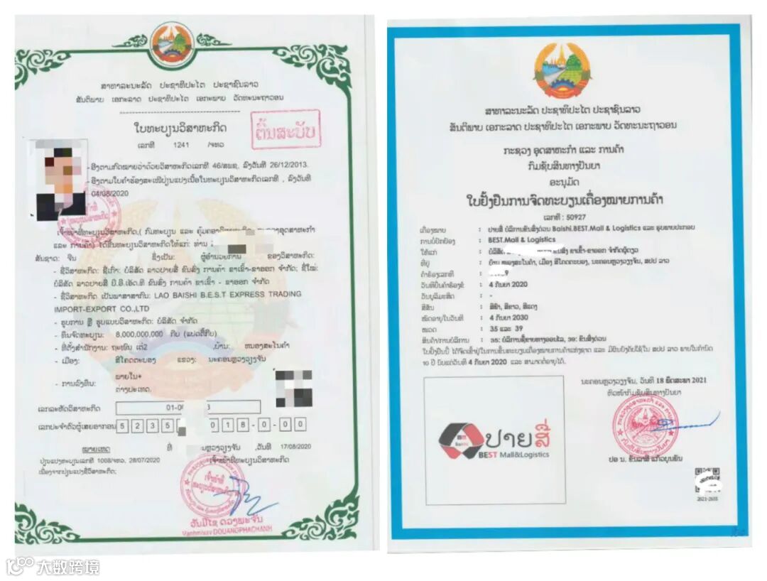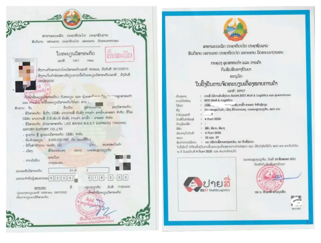 老挝百世公司营业执照及商标证: