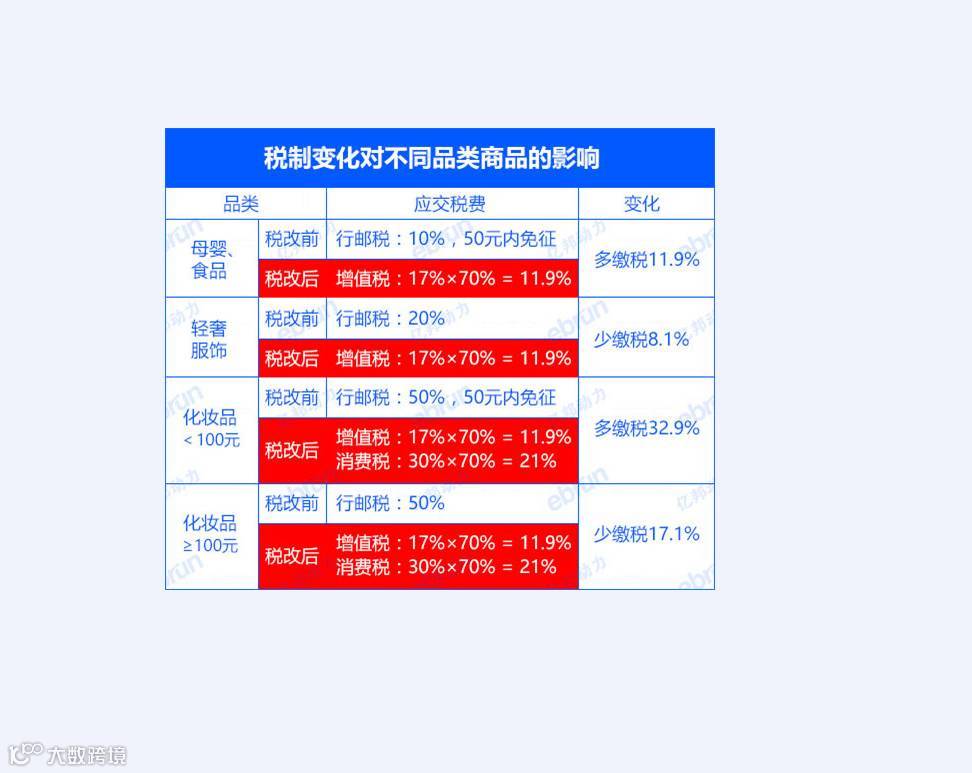 那么如果此税收政策被严格执行的情况下,跨境电商的纳税额究竟会发生怎样的变化呢?让我们言简意赅地看图说话。