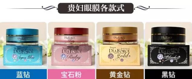 1.正品DiaForce贵妇眼膜贴一共有四个系列,分别为:蓝钻双倍补水、宝石粉加强型、黄金钻经典款(这个是早出道知名度最高的)和黑钻升级款。各款包装如下图: