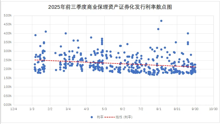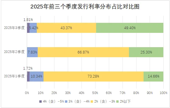 2025年前三季度的平均发行利率为2.3%,较2024年平均发行利率2.5%下降20个基点,整体发行利率呈下降趋势。