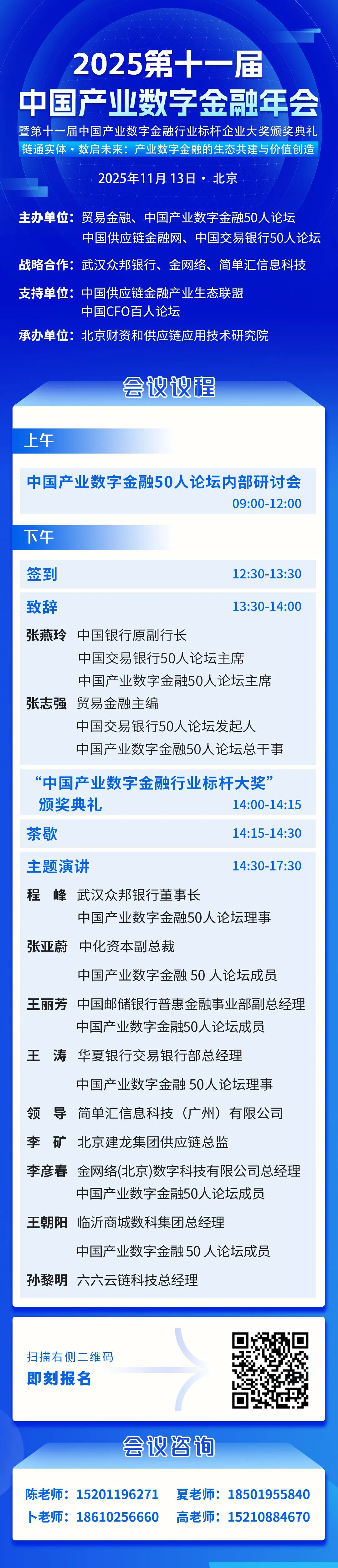 当下,新一轮科技革命与产业变革加速推进,产业数字金融作为促进经济增长的新引擎,历经传统产业金融1.0、供应链金融2.0到数字金融3.0阶段,已形成覆盖全产业链的生态服务体系。然而,其发展仍面临技术支撑不足、监管模式滞后等挑战。为此,2025第十一届中国产业数字金融年会将于11月在北京举办,聚焦产业数字化与金融创新融合趋势,汇聚政府、企业、金融机构等各方力量,探讨行业痛点与解决方案,推动构建良性金融生态,助力产业链协同发展。
