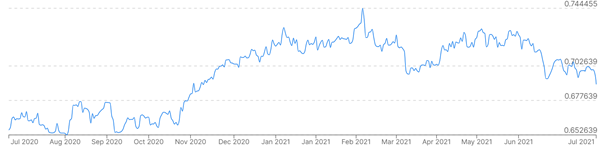 6 月份新西兰元兑美元走弱,兑美元汇率从 0.7277 跌至 0.6982。这减少了 7 月份 AWG 定价的下降。