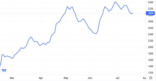 7月份的AWG价格平均每立方米下降8-9美元。吉斯伯恩(Gisborne)的降幅更大,那里的船只现在不得不在靠泊前排队一个多月。这些滞期费成本以较低的AWG价格转嫁给森林所有者。最近,这也开始影响陶朗加,那里的船只等待时间已延长至10天。如果船舶等待时间没有改善,这将影响8月份AWG价格。