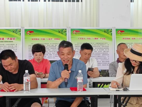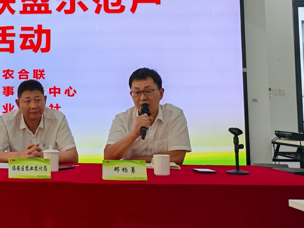 临安区山核桃产业农合联理事长邓杨勇致辞,并就与杭州姚生记食品有限公司提升产销对接、开展联合合作助力农户增收致富作了工作布置。