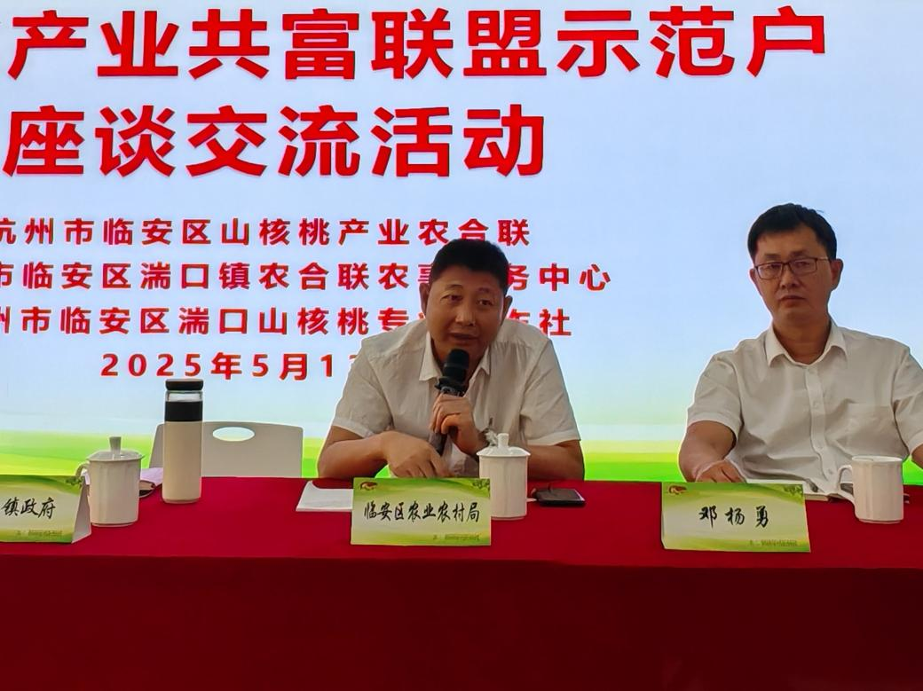 2025年5月13日,由临安区山核桃产业农合联、湍口镇农合联农事服务中心、昌化供销社及湍口山核桃专业合作社联合主办,以“产业赋能促共富 助农带农作示范”为主题的山核桃产业共富联盟座谈交流活动在姚生记数字观光工厂举行。市林科院院长何奇江,区供销总社党委书记、主任郭军波,岛石镇党委书记姚晗,湍口镇政府副镇长包大为,龙岗镇政府副镇长郑涛出席。区农技推广中心和杭州市林草乡土专家团队到会指导。山核桃产业共富联盟示范户代表60余人参加活动。