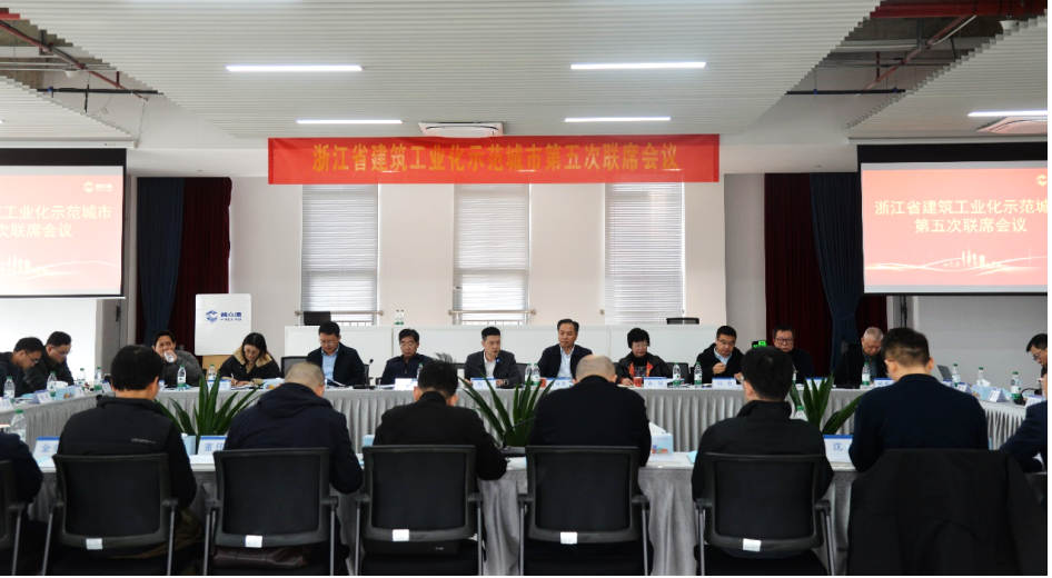 近日,浙江省建筑工业化示范城市第五次联席会议在台州召开。浙江省建筑业管理总站站长施政,浙江省新型建筑工业化专家委员会主任委员柴林奎,专家委外围护系统组副组长、联席会议召集人陈敏,杭州、宁波、绍兴、台州四地住建主管部门负责人、行业协会(联盟)会长、秘书长、专家代表等37人参加会议。