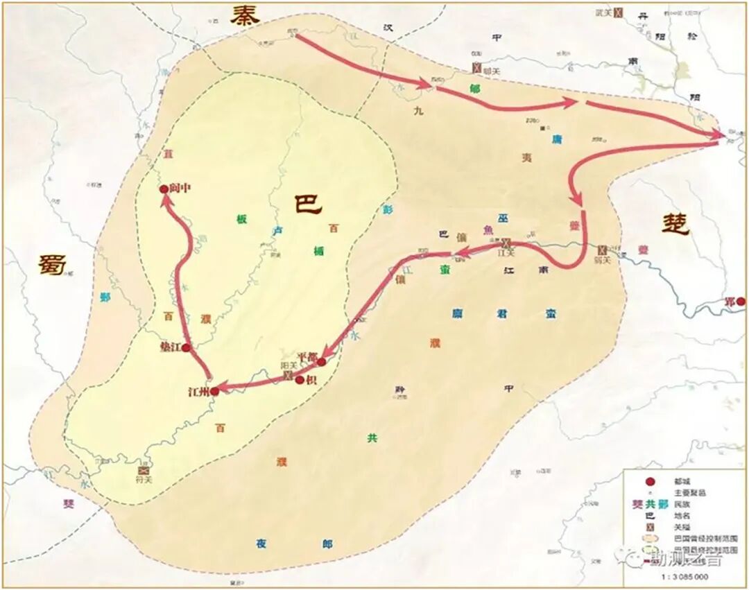 巴方。巴国在殷商时代已见称于世,殷卜辞称为“巴方”。方者,国也。巴方是殷代很活跃的一个方国,其地理位置众说纷纭,一般认为在汉水上游地区。四川师范大学巴蜀文化研究中心教授、中国先秦史学会副会长段渝在《四川通史》中认为巴方是位于殷千里王畿西边的农业方国。