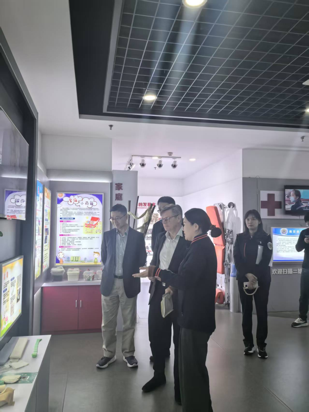 在一楼南京市生命急救体验馆,沈佩向专家团介绍了南京市急救中心的历史沿革、运行模式、体系建设和承担的急救科普职能,目前该体验馆已成为南京市中小学生掌握急救知识与技能的热门打卡地。
