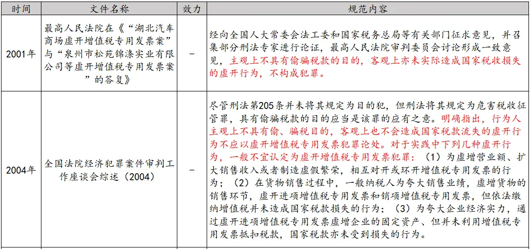 (二)2 001 年以来:最高法、检多次要求虚开须具备主观故意与客观结果