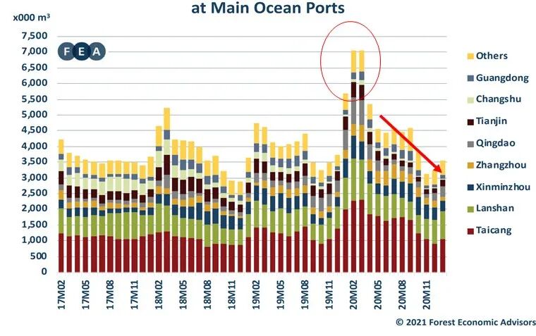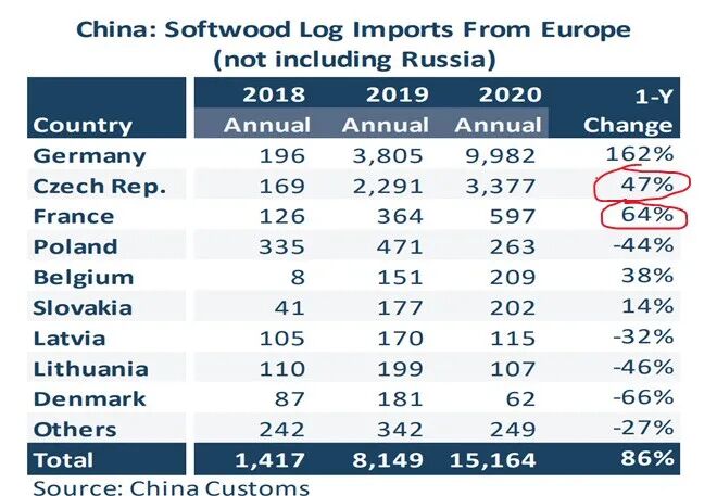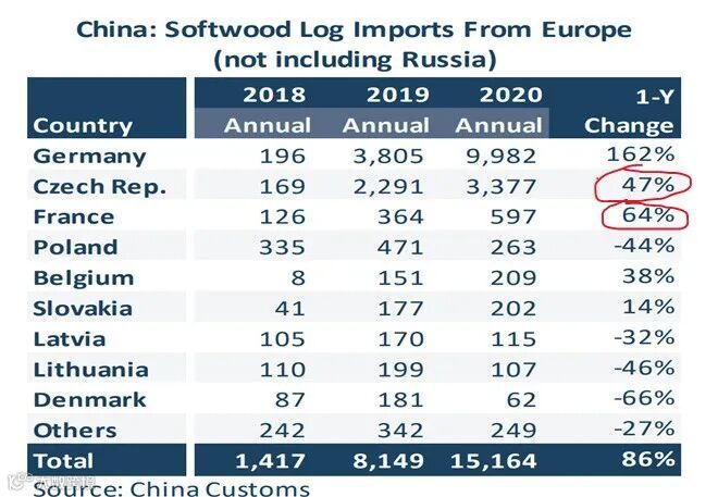 近期木材市场可谓波澜壮阔,海外原木和板材报盘价格都在急剧攀升,而在国内不管是原木还是板材买家都陷入等待观望,恐高停购的状态。2020年,欧洲云杉原木的供应量占据针叶材原木总进口量的1/3,在下半年已经反超新西兰成为最大的进口来源。欧洲云杉原木自然成为市场最为关心的热点,近期价格会跌吗,走势如何?不妨从数据方面做些研究判断,以期把握市场机会。