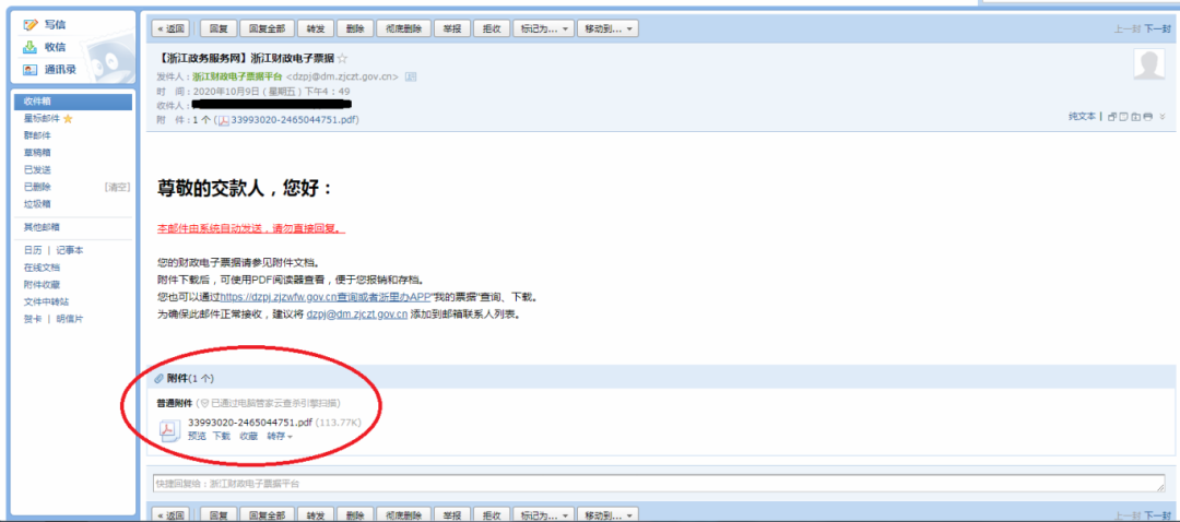 5.1电子邮箱收到推送的发票,选择附件下载即可。