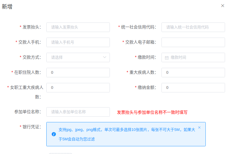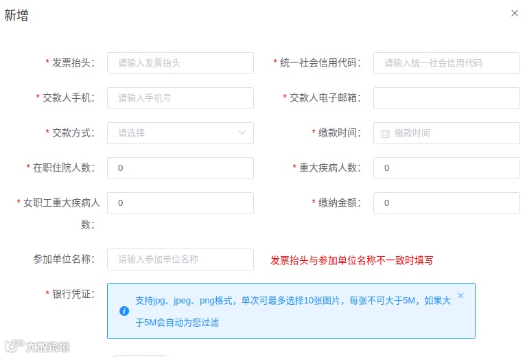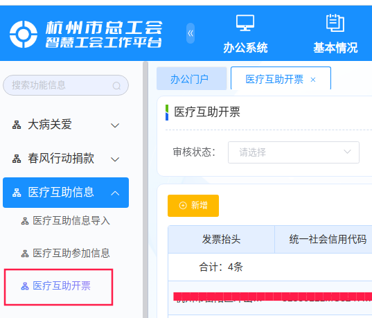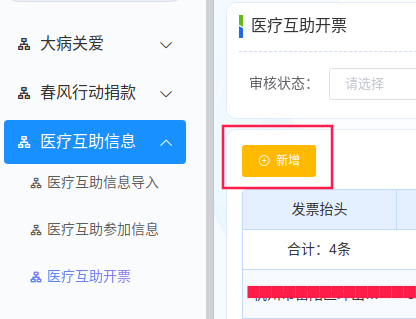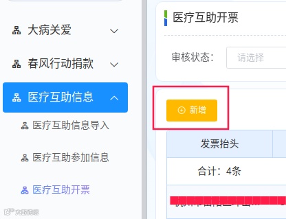 4.2 点击“新增”,进入“医疗互助开票”页面。