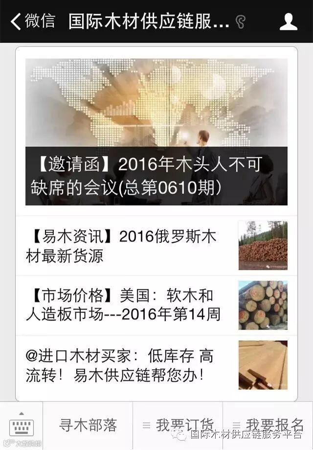 每周海外供应信息将通过服务号下端【寻木部落】和大家交流发布,请有兴趣直接采购的买家点击进入即可了解。