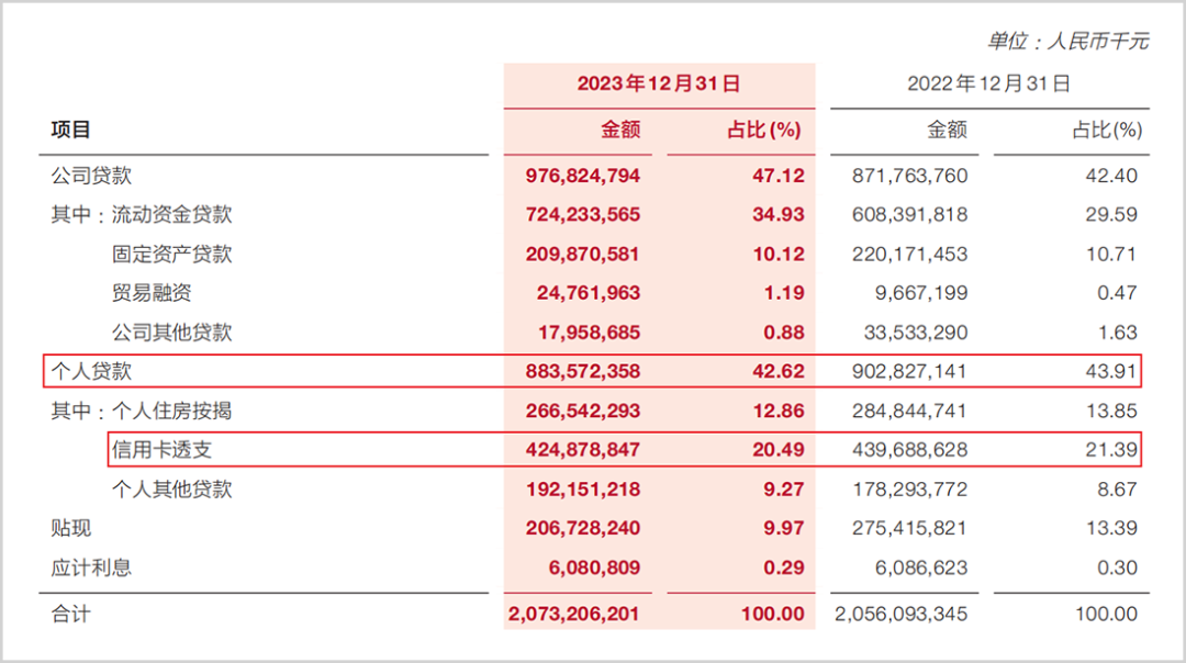 广发银行信用卡业务问题同样是行业性挑战,行业整体规模面临天花板及竞争白热化同质化是主要原因。再叠加个人按揭贷款受地产业调整影响规模下降,共同造成了零售贷款总规模的下滑。2023年由前一年的9028.27亿下降至8835.72亿,规模也被公司贷款所超越,预计2024年依旧承压。