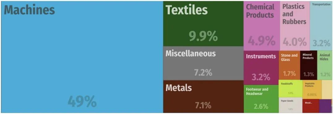 在这段特殊时期里,海外市场的消费者对季节性商品需求不变,甚至某些商品受疫情影响会可能会有突然的需求。而目前来看,排在机械设备之后,传统的纺织服饰是我国排名第2的出口品类。