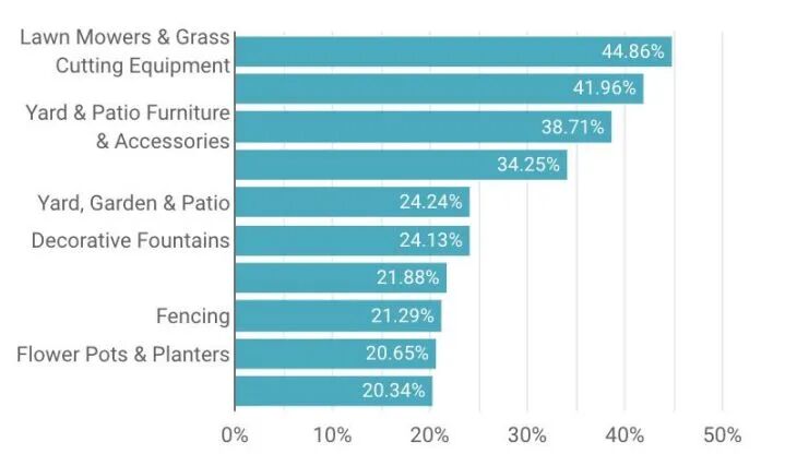 > 家居园艺类是第2季度搜索增长第三大的商品类别