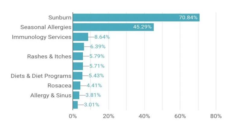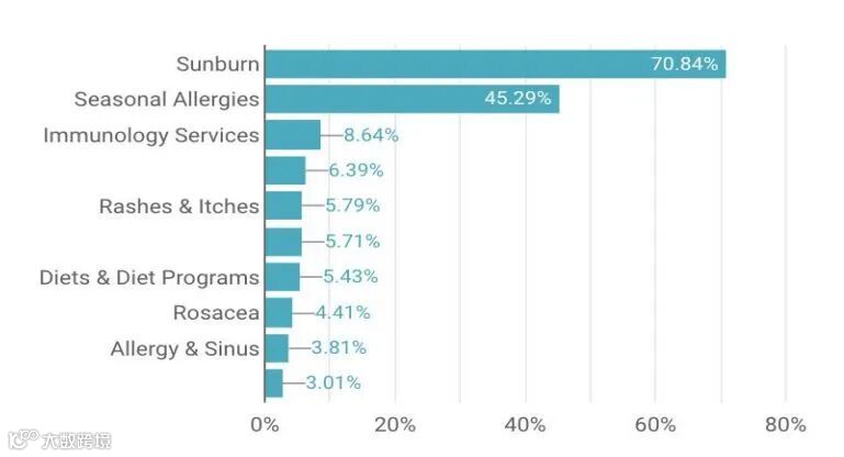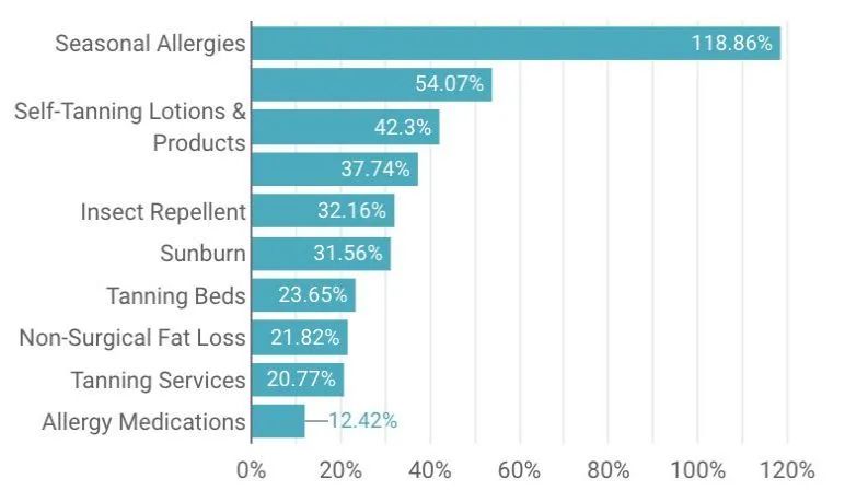 我们预测美国消费者对健康产品的需求会从4月份开始呈现上涨趋势;其中防晒产品比同年其他时间增长 70%,对治愈季节性过敏的产品需求也会在这段预测的时间内(Q2)有45%以上的增长。