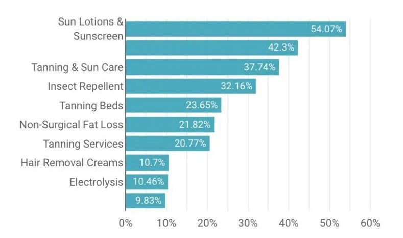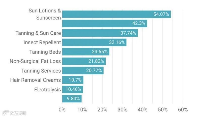 > 美容与个人护理的在下个季度的搜索量比去年同期增长最大,值得大力关注