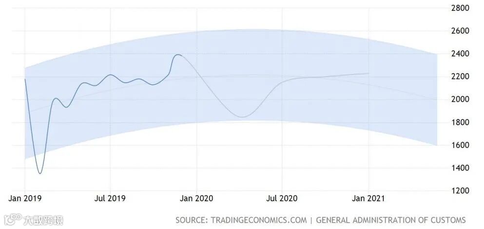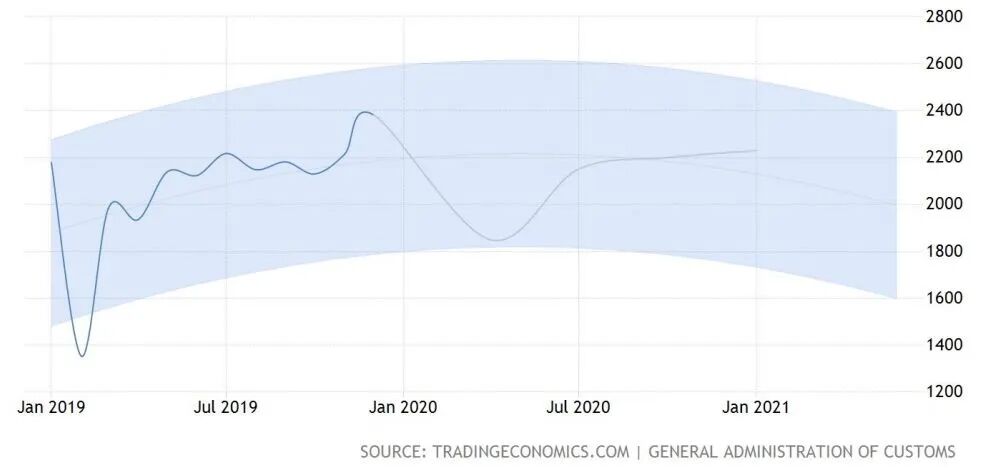 根据 Tradingeconomics 的预估数据,在第1季度中国的总体出口量会大幅降低,并在4月份达到冰点,预测在5月份之后出口会逐渐回温,建议商家抓住5-7月(第2季度)这波上升趋势并提前为此做好准备。