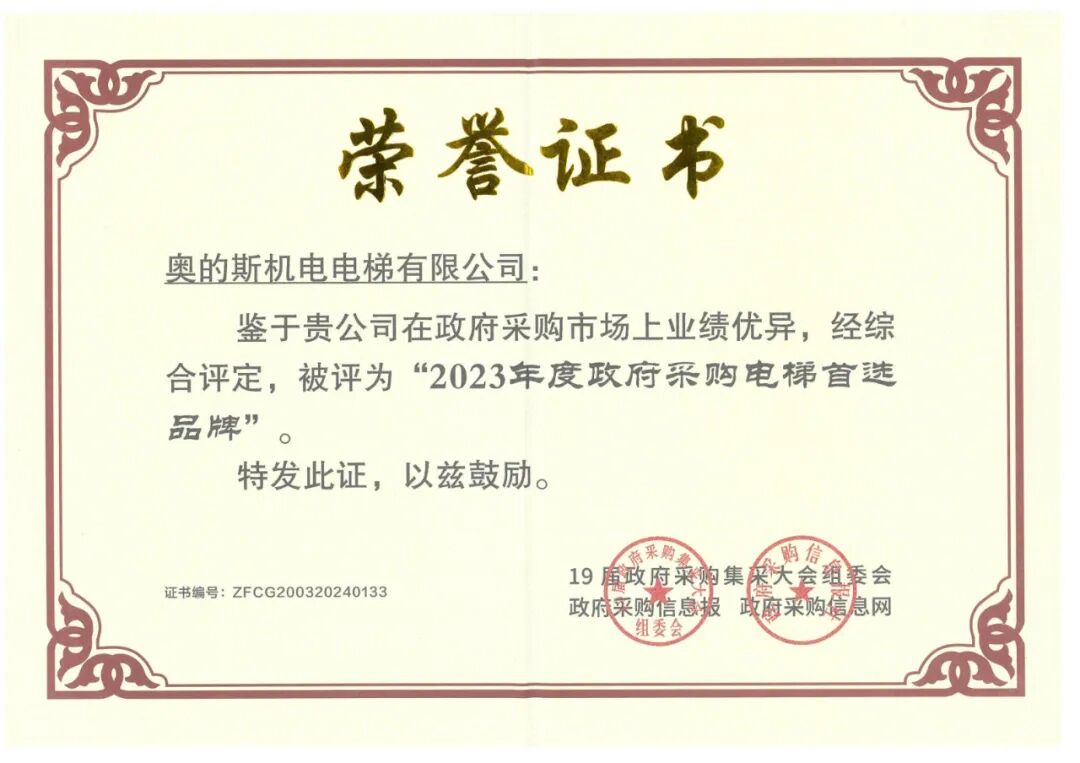 近日,智慧城企业奥的斯机电的新梯产品、服务业务、现代化改造实力、创新技术、绿色科技获得政府采购的认可,先后获评“2023年度政府采购电梯首选品牌”“2023年度政府采购电梯首选服务品牌”“2023年度政府采购电梯创新技术首选品牌”“2023年度政府采购电梯绿色节能优选品牌”“2023年度政府采购旧楼加装电梯首选品牌”等五项大奖。