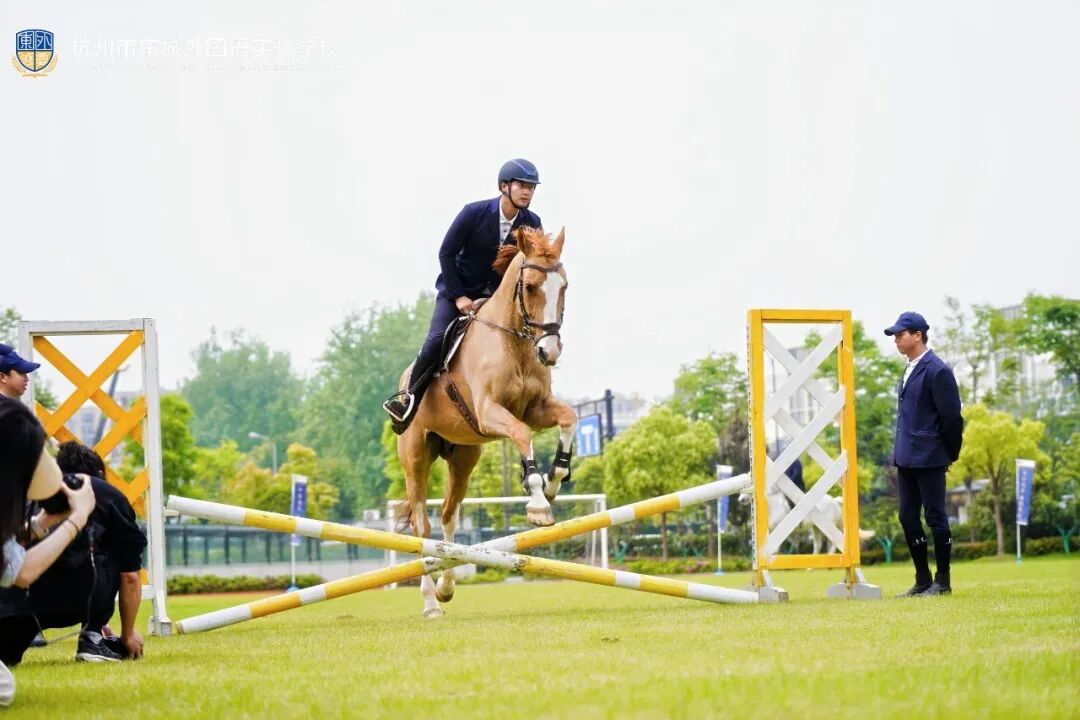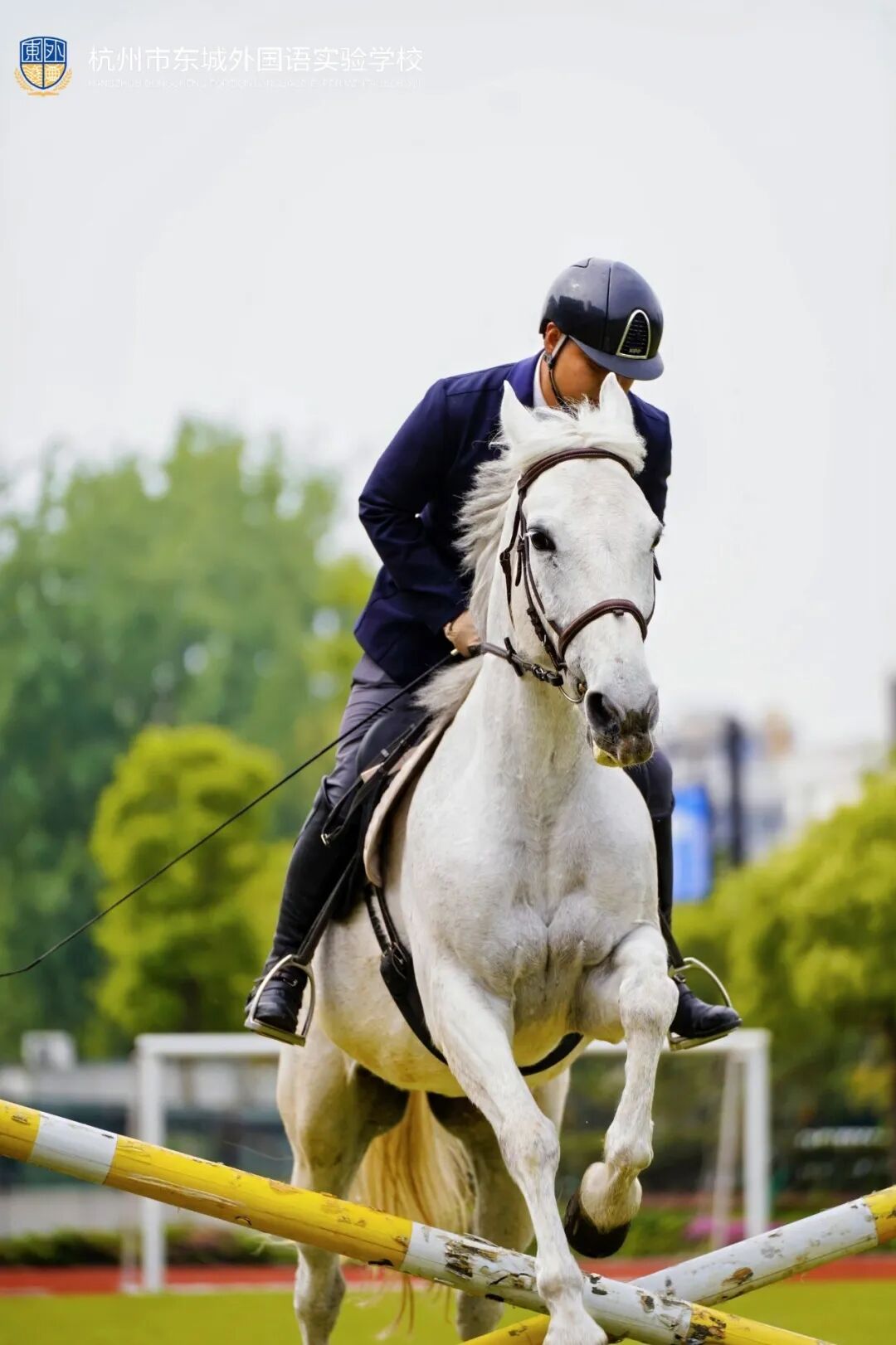 在空军叔叔们神圣庄严的升旗仪式后,为进一步传递体育竞技的魅力,东外极具创意地引入了马术表演,驭马者骑行身姿挺拔,气宇轩昂;马蹄落下的声音如同鼓点,与音乐相互应和,欢呼声此起彼伏。